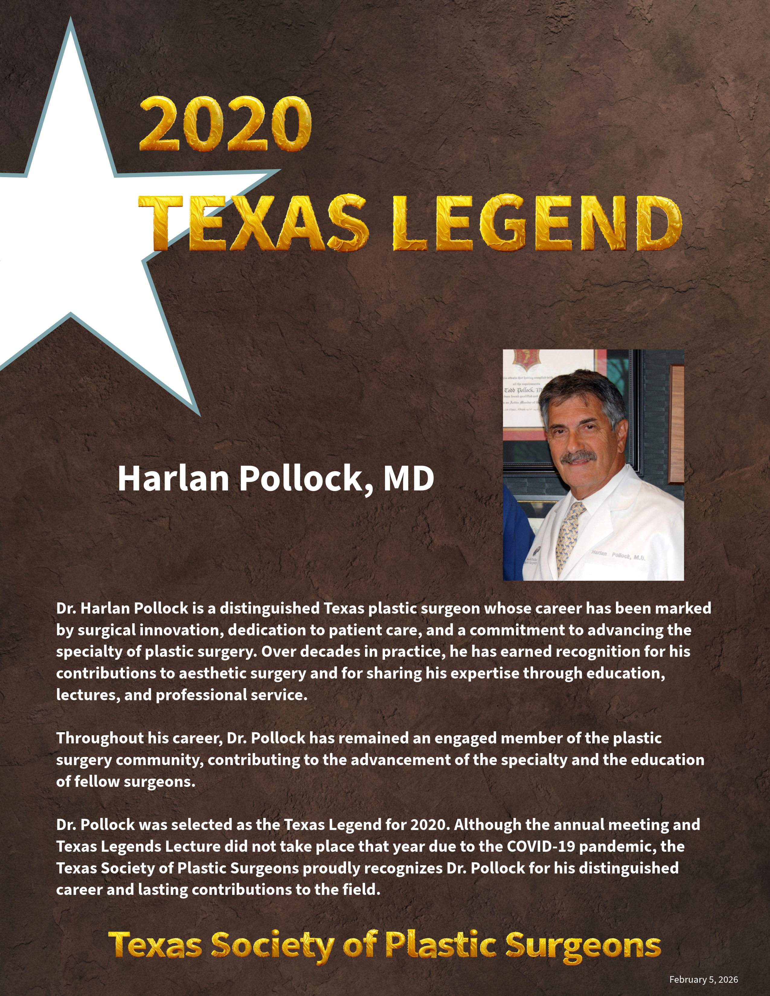 The Texas Legends represent the most distinguished members of the Texas Society of Plastic Surgeons — those whose careers have shaped the profession, strengthened our Society, and elevated the standard of care across our state.